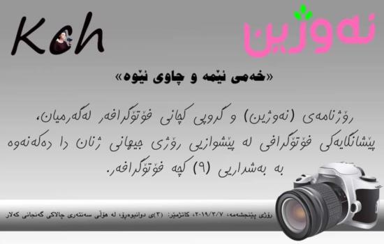 رۆژنامەی (نەوژین) و گروپی کچانی فۆتۆگرافەر لەگەرمیان، پێشانگایەکی فۆتۆگرافی لە پێشوازیی رۆژی جیھانی ژنان دا دەکەنەوە، بە بەشداریی (٩) کچە فۆتۆگرافەر.