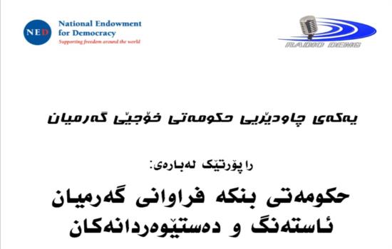 لهم روهشهوه دو راپۆرتى خۆی له دو مانگى رابردو بڵاوكردهوه كه تایبهت بو به "كهرتى گهشتوگوزار" و "كێشهى بیناى حكومی لهگهرمیان"، ئێستاش راپۆرتى سێیهمى خۆی بڵاودهكاتهوه بهناونیشانى: حكومهتى "بنكه فراوان" له گهرمیان، ئاستهنگ و دهستێوهردانهكان.
