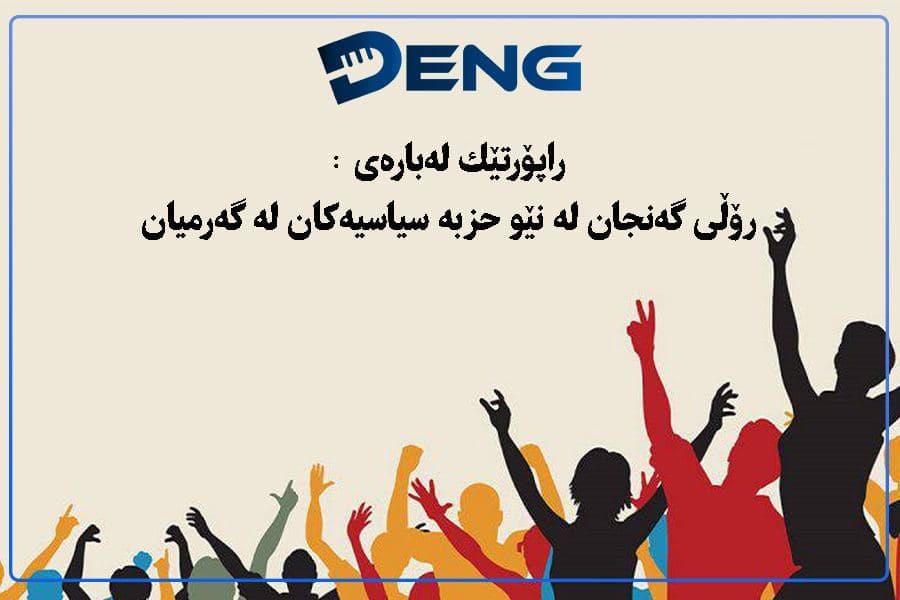 لهمیانهى ئهم راپۆرتهوه، لهسهر پرسی بهشداریی گهنجان له كارى سیاسیی و حزبیی و ئاستهكهى دهوهستین، ههروهك ئالهنگارییهكانى ئهم بوارهش دهخهینهڕو.