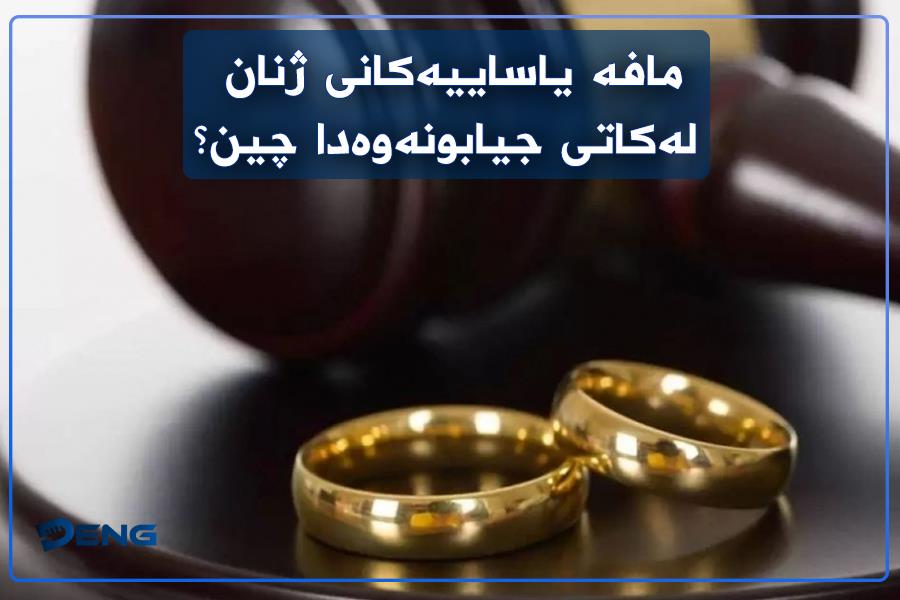 لهمیانهى ئهم بهرنامهوه گفتوگۆ دهكهین لهبارهى ئهو مافانهى كه بۆ ژنان بهرجهستهكراون له یاسا بهركارهكاندا له پاش جیابونهوهیان له هاوسهرهكانیان. بهرنامهكهش بهمیوانداریی: كاوه لهتیف- پارێزهر، بهڕێوهچوه.