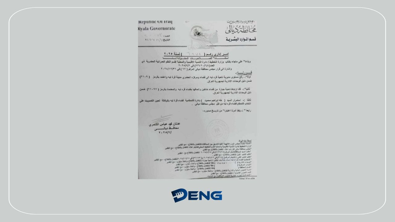 بەپێی فەرمانێک کە پارێزگاری دیالە 15ـی ئەم مانگە واژوی کردوە، بڕیاردراوە بە بەرزکردنەوەی ئاستی ناحییەی قەرەتەپە بۆ قەزا، ئەمەش پاڵپشت بە نوسراوی وەزارەتی پلاندانان.