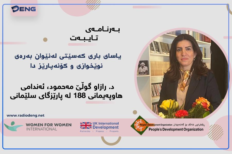 لەمیانەی بەرنامەیەکی تایبەتدا، گفتوگۆ دەکرێت لەبارەی ئەو گۆڕانکارییانەی لە یاسای باری کەسێتی عێراقی دا کراون و نیگەرانی چالاکوان و ئازادیخوازانی لێکەوتوەتەوە، هەروەک باس لەو بڕگانە کراون کە گۆڕانکارییان تێداکراوە، ئەویش بەمیوانداریی: د. رازاو گوڵێ مەحمود، ئەندامی هاوپەیمانی ١٨٨ لە پارێزگای سلێمانی.